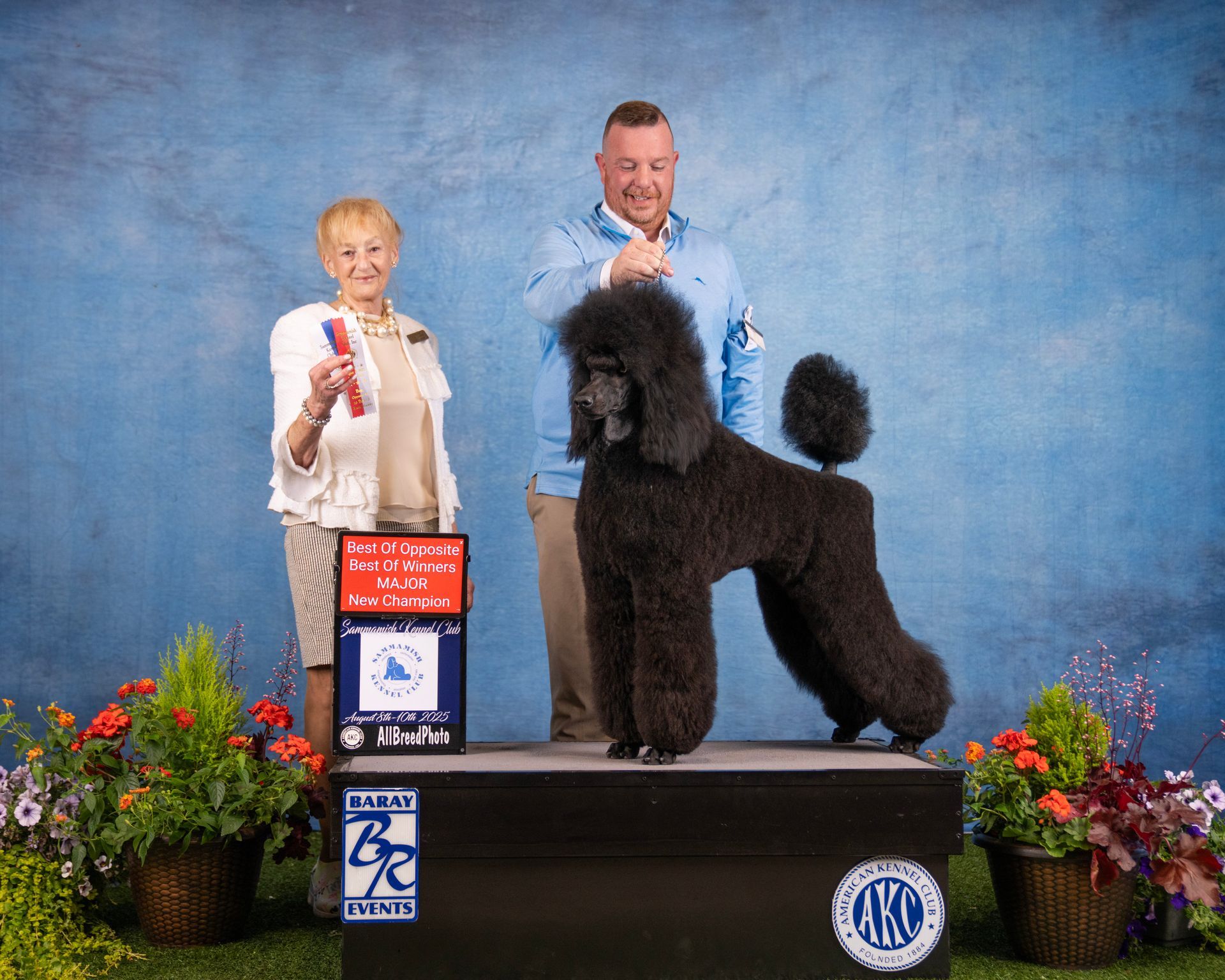 Atalie is a gorgeous affectionate girl that I imported from Spain 🇪🇸. Atalie's pedigree is comprised of several well known and respected Standard Poodle lines like Huffish and Afterglow. Atalie has a nice rich jet black coat, nice reach and stride when she prances around the ring. At 6 months old she already self stacks when she is out and about in the yard playing with the other dogs - a natural for the show ring. I am excited to see how she continues to develop and see what she will accomplish during her journey to AKC Championship.