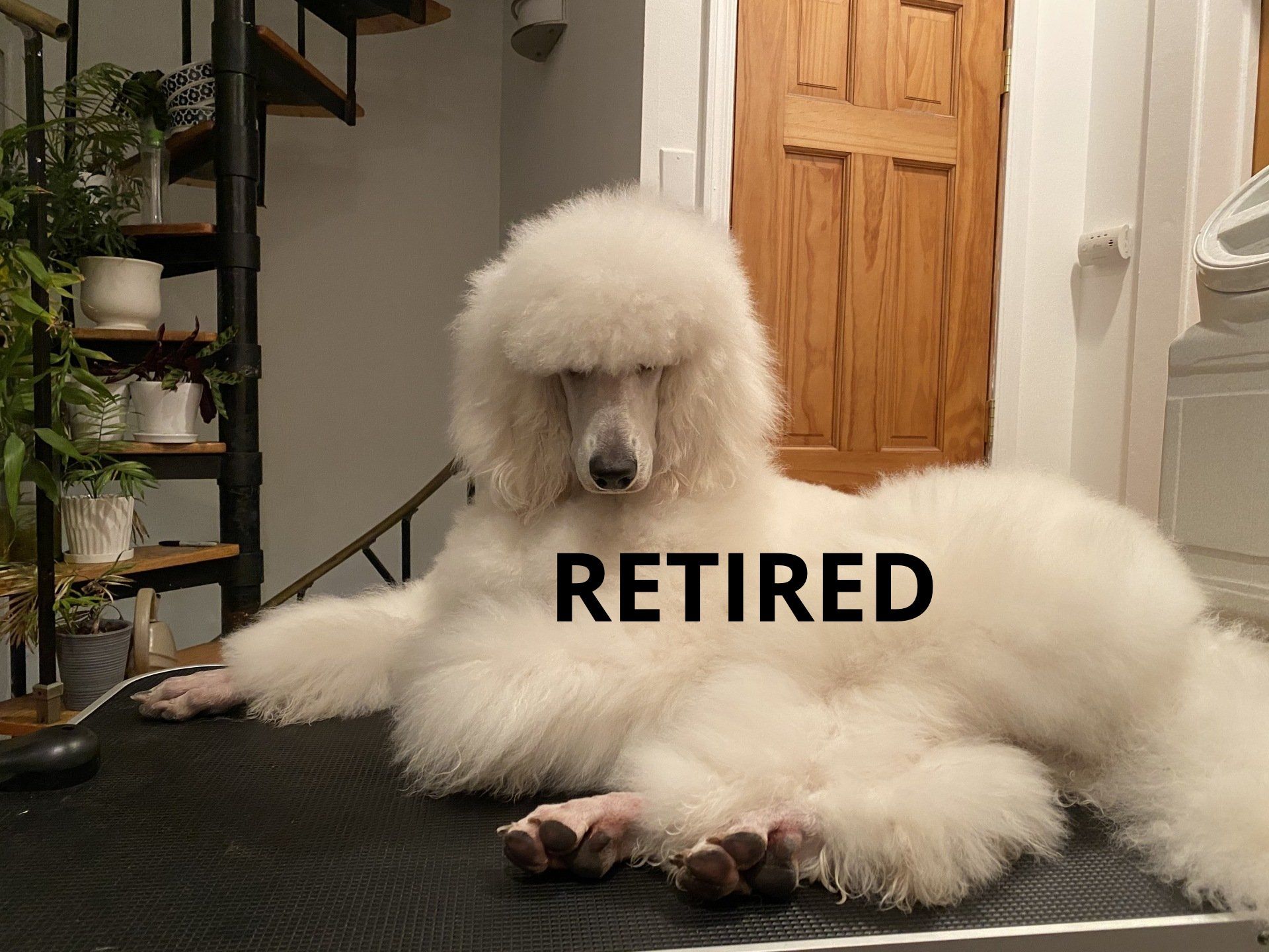 Elton is named after the English singer, songwriter, pianist, and composer Elton John. He truly embodies your typical regal and sophisticated Standard Poodle. Elton is a very calm, affectionate and leg warming dog. He loves rough housing with every dog he meets but is the gentlest with his humans. A true love bug. Elton is a good sized Standard Poodle weighing in around 60-65 pounds and is 26 inches at the withers. He comes from Champion and Grand Champion lines like Cloud Nine and Gulfbreeze. His coat is very thick and plush like a huge cotton ball. He also makes the girls quite jealous as his hair grows back very quickly whenever trimmed.